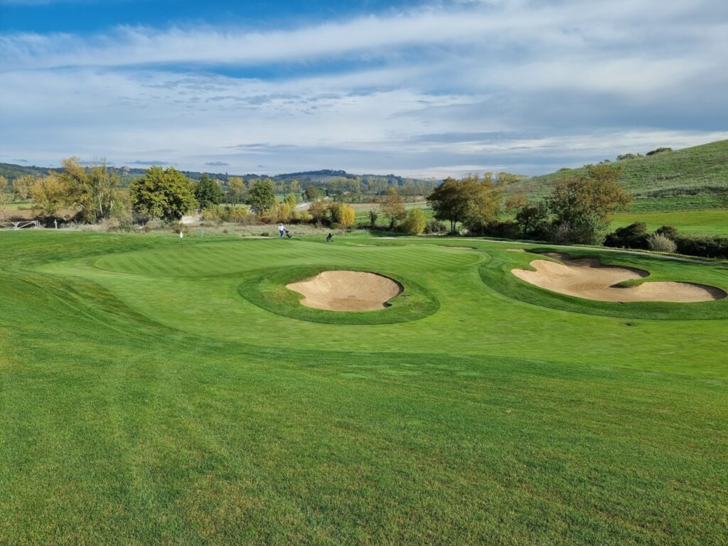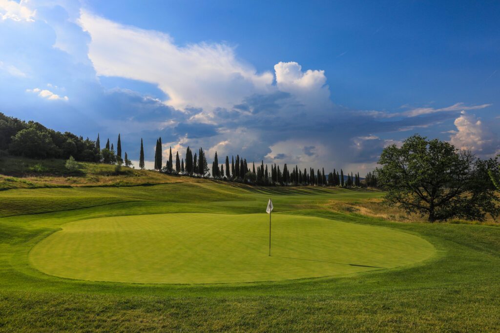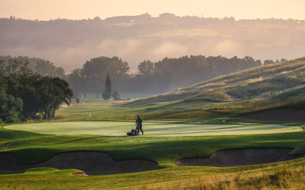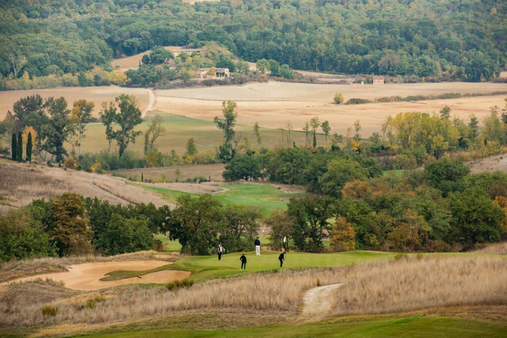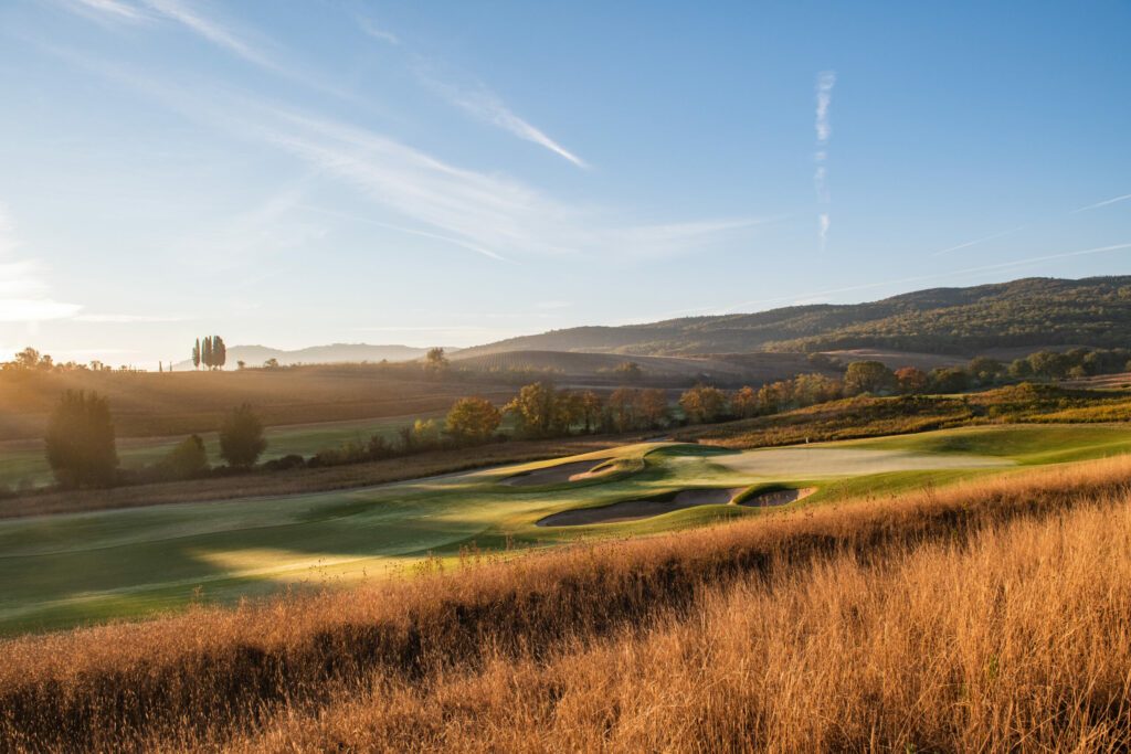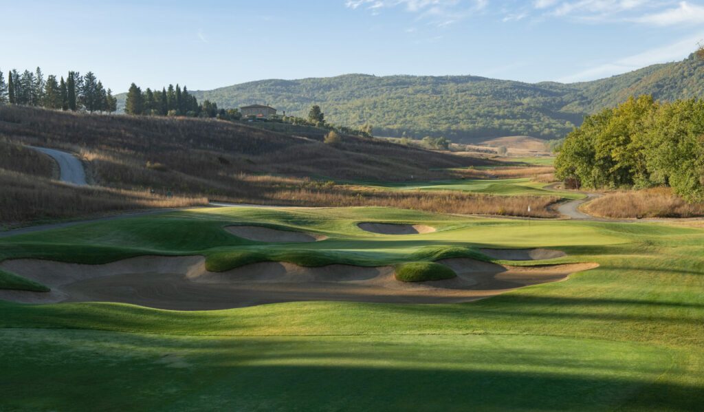 Der Golfplatz fügt sich nahtlos und auf natürliche Weise in die weichen Konturen der toskanischen Landschaft ein. Der am 20. August 2022 verstorbene Designer Tom Weiskopf, ein ehemaliger Major-Champion (The Open 1973 in Royal Troon) wurde mit dem Design des 18-Loch-Golfplatzes beauftragt und war von der Schönheit der Natur sichtlich beeindruckt.