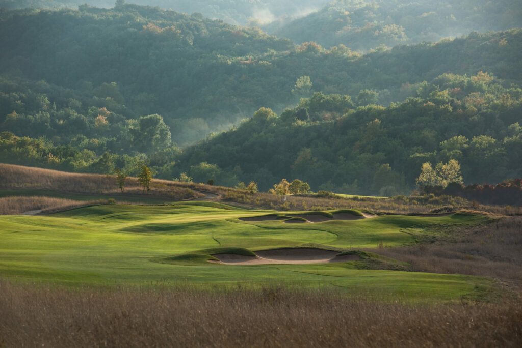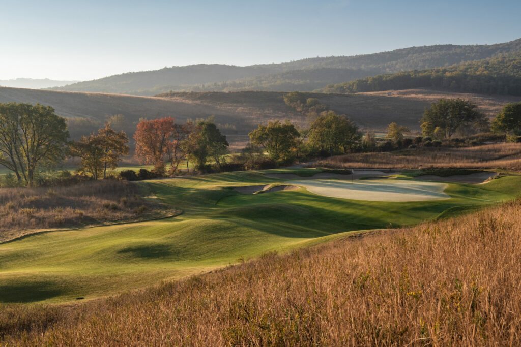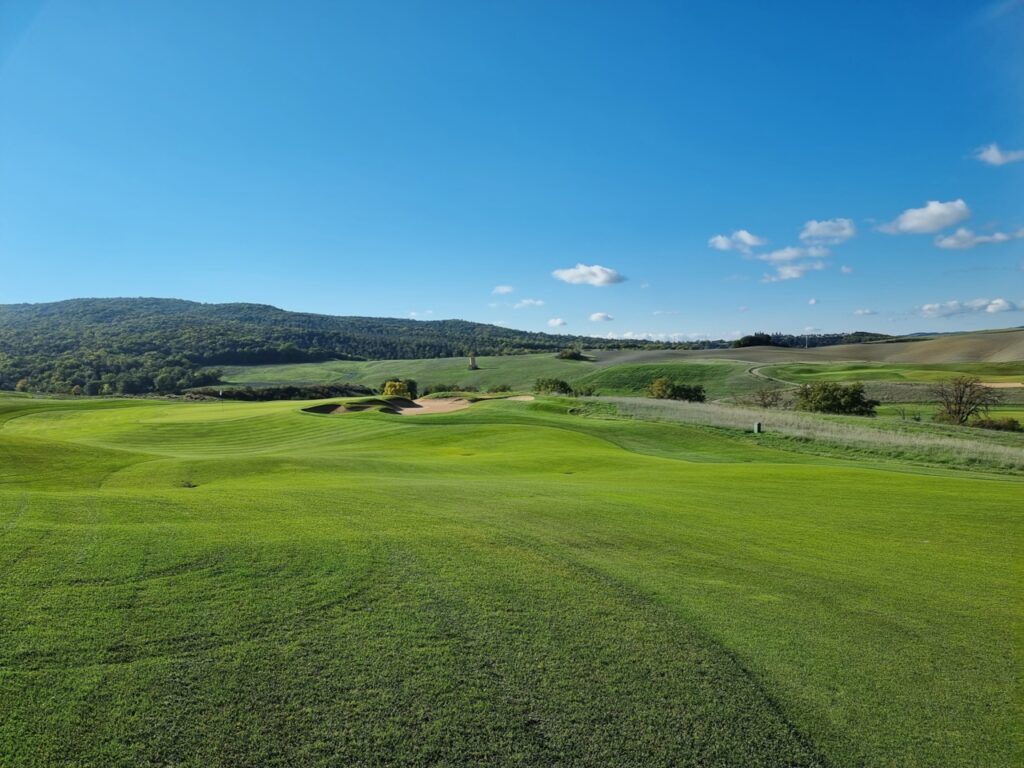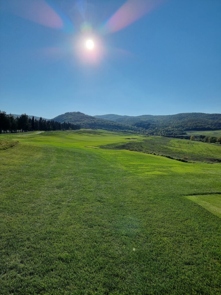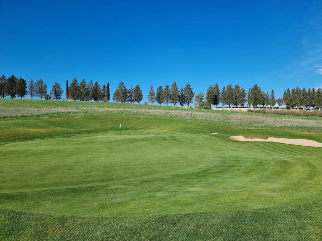 Der Golfplatz fügt sich nahtlos und auf natürliche Weise in die weichen Konturen der toskanischen Landschaft ein. Der am 20. August 2022 verstorbene Designer Tom Weiskopf, ein ehemaliger Major-Champion (The Open 1973 in Royal Troon) wurde mit dem Design des 18-Loch-Golfplatzes beauftragt und war von der Schönheit der Natur sichtlich beeindruckt.