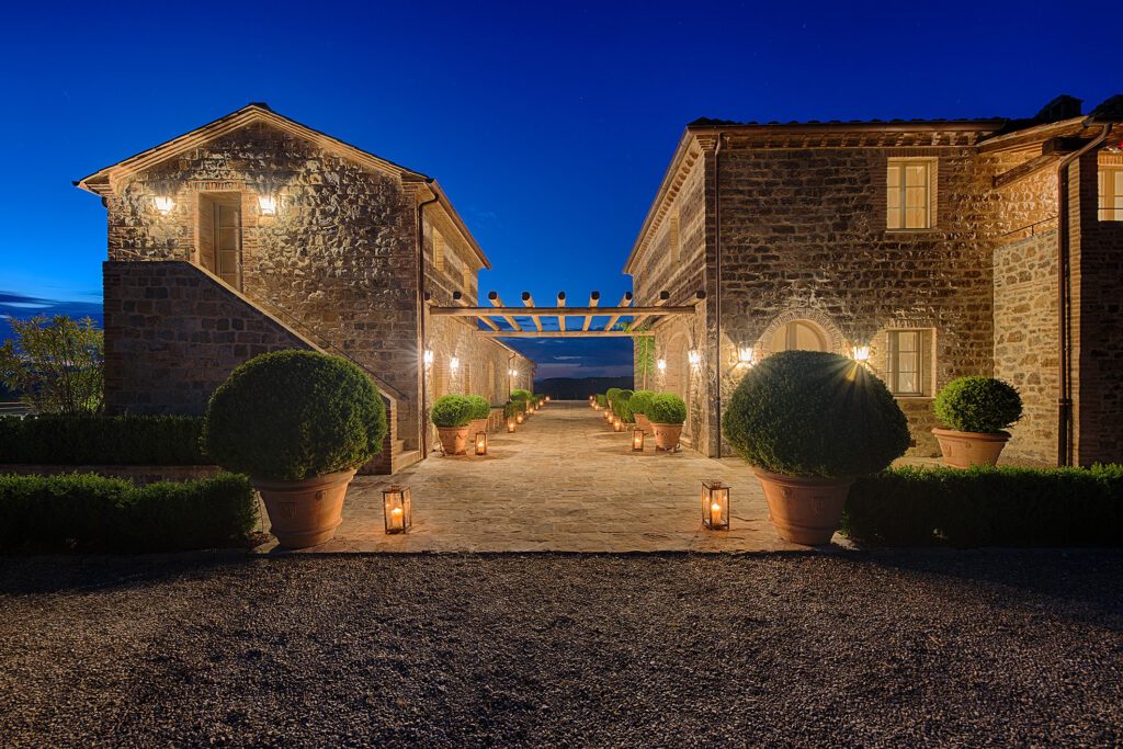 Schon an der Auffahrt zum Hotel spürt man, an einem besonderen Ort angekommen zu sein. Die sanfte Hügellandschaft, die erhaltenen Burg-Ruinen sowie die kleine Kapelle aus dem 13. Jahrhundert erzählen eine bewegte Geschichte. Die luxuriös gestalteten 42 Suiten suchen mit ihrer unkomplizierten Eleganz ihresgleichen. Alle Details, jedes Möbelstück und selbst die Kunstwerke wurde persönlich liebevoll von der Innenarchitektin Teresa Burgisser und Chiara Ferragamo ausgesucht, stets mit Rücksicht auf die Vergangenheit und Authentizität des historischen Anwesens. Zu den Suiten im Borgo genannten Hauptgebäude, gesellen sich 11 ehemalige toskanische Farmhäuser, die zu traumhaften Villen mit bis zu sechs Schlafzimmern umgebaut wurden.