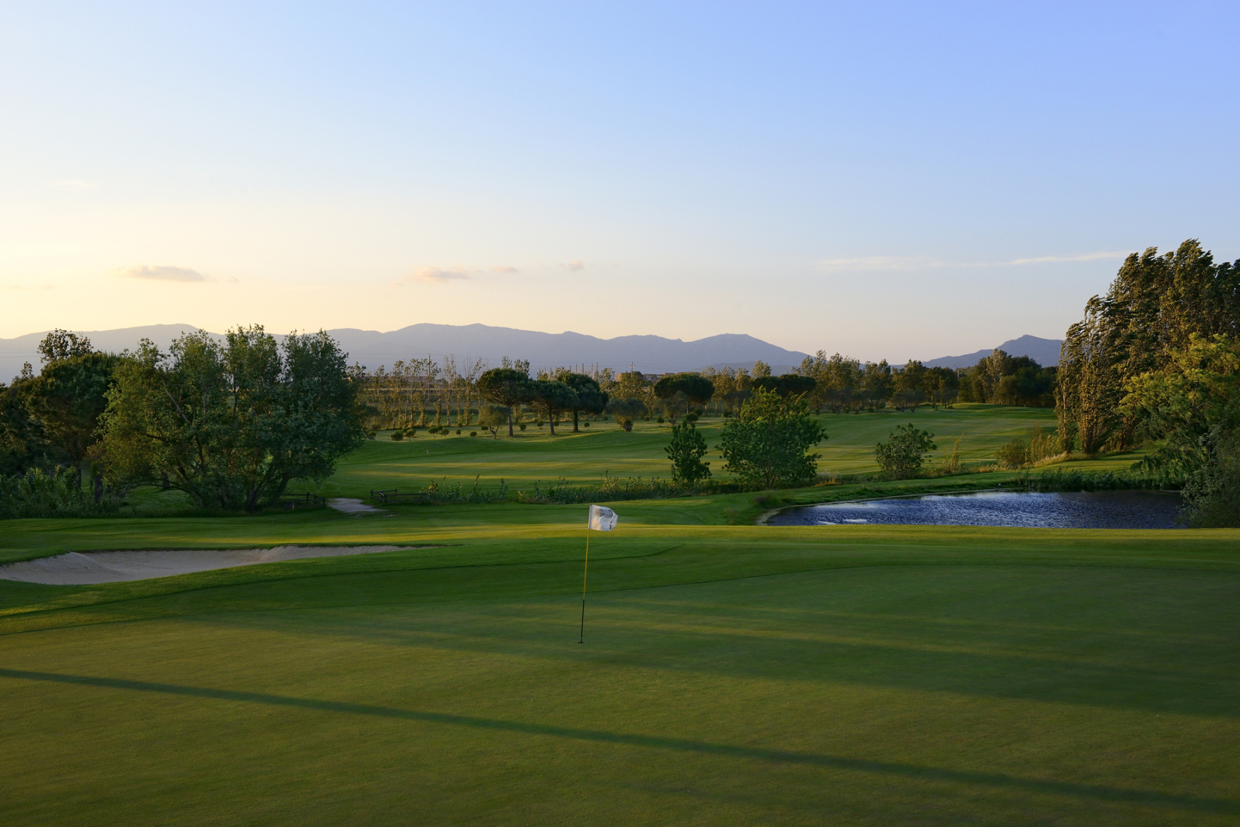 Der Golf Club Peralada ist ein hervorragender 18-Loch Par 71 Parkland-Kurs mit einer Länge von 6071 m und 4 Abschlägen pro Loch. Jordi Soler i Peix hat einen überwiegend ebenen Platz gezeichnet, der mit seinen wenigen Hängen, seinen Seen, Bäumen und saftigen, gepflegten Gärten, für Spieler aller Stärken bestens geeignet ist. Er fügt sich hervorragend in seine Umgebung ein und ist die Heimat zahlreicher Wassertiere und Vogelarten. Für den Natur- und Umweltschutz wird viel getan, denn dieser Platz war der erste in Europa, der das EU Eco-Management and Audit Scheme (EMAS) Zertifikat erhalten hat. Die Wahl des Signature-Hole fällt schwer. Das spektakuläre PAR 3 der 6, steil von einem aussichtsreichen Hügel hinab. Oder die Spielbahn 9, ein PAR 3 verteidigt von einem Bunker und Wasser rechts und hinter dem Grün, garniert mit einem tollen Blick auf das Hotel und die Pyrenäen. Mir persönlich gefällt aber auch die Spielbahn 16 sehr gut, ein langes PAR 4, bei dem der zweite Schlag über den See auf das Grün deutlich leichter fällt, wenn man einen geraden langen Drive gespielt hat. Ansonsten wird es schwer an den Bäumen vorbei über den See zu kommen. Das abschleißende PAR 3 der 18 ist ein weiteres Highlight, dass einen Schlag über den See erfordert.