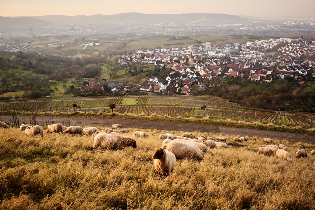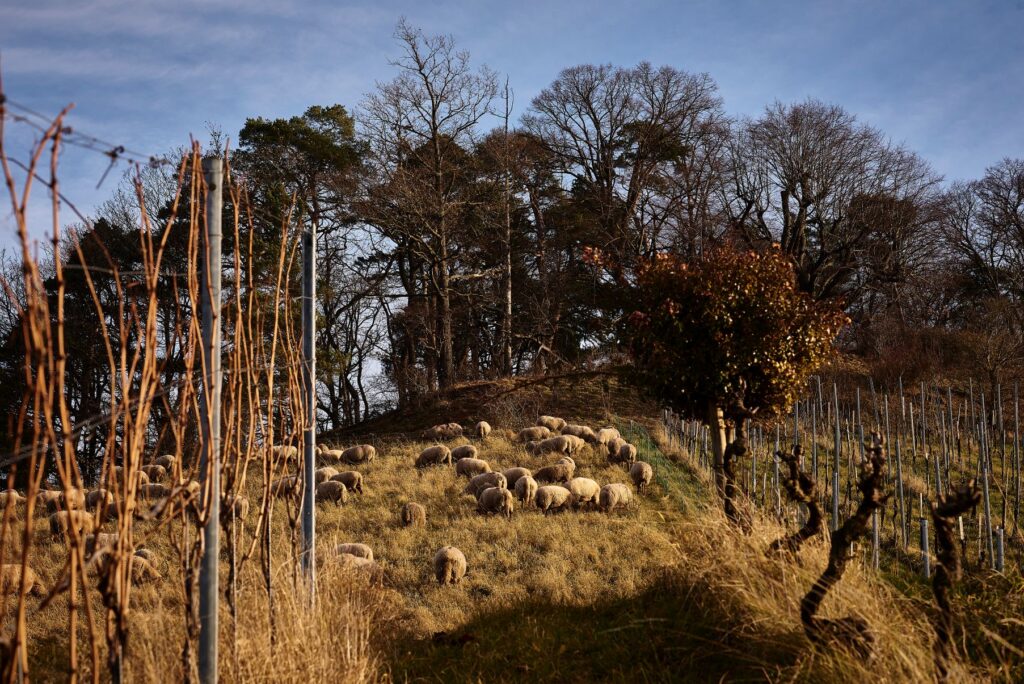 vom Käsbühlhof werden aufgegebene Rebflächen durch Schafbeweidung gepflegt. Die Tiere halten die