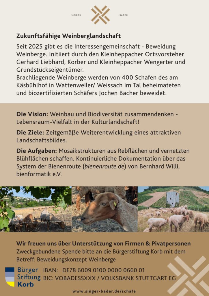 Leise ziehend wandert die Herde über die steilen Hänge am Korber und Kleinheppacher Kopf. Rund 400 Coburger Fuchsschafe mit ihren über 50 Lämmern grasen dort, wo früher Reben standen. Was auf den ersten Blick idyllisch wirkt, ist Teil eines zukunftsweisenden Projekts für den Weinbau.