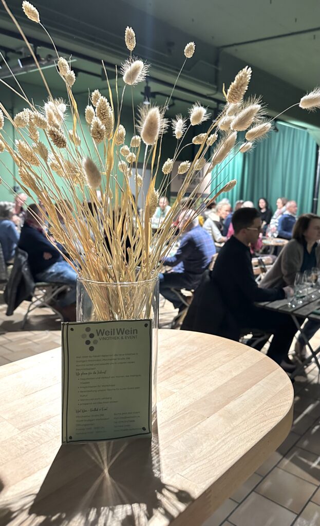 Besonderer Beliebtheit erfreut sich das „Monatsjubiläum“ Afterwork. Hier trifft sich, was Feuerbach und Weilimdorf mit ganz Stuttgart und darüber hinaus verbindet: Nachbarn, Kreative, Unternehmer, Freunde, Genießer. Unkompliziert, offen, entspannt. Weil Wein ist kein klassischer Weinladen. Es ist ein Treffpunkt. Ein Ort für Gespräche zwischen Reben und Stadt. Ein Projekt, das Fabian Rajtschan gemeinsam mit Nico Postelt etabliert hat – und das zeigt, wie viel Potenzial im Miteinander liegt.